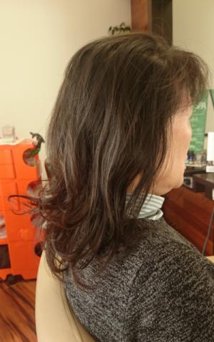表面の髪も内巻きではなく動きが出るようにいたしました。