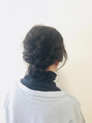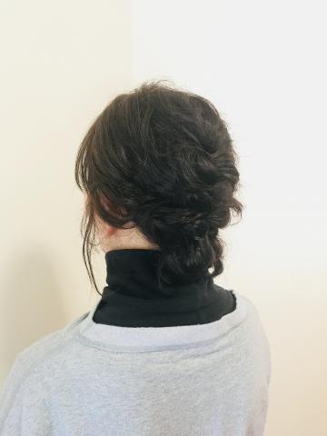 三つ編みとくるりんぱででまとめました。